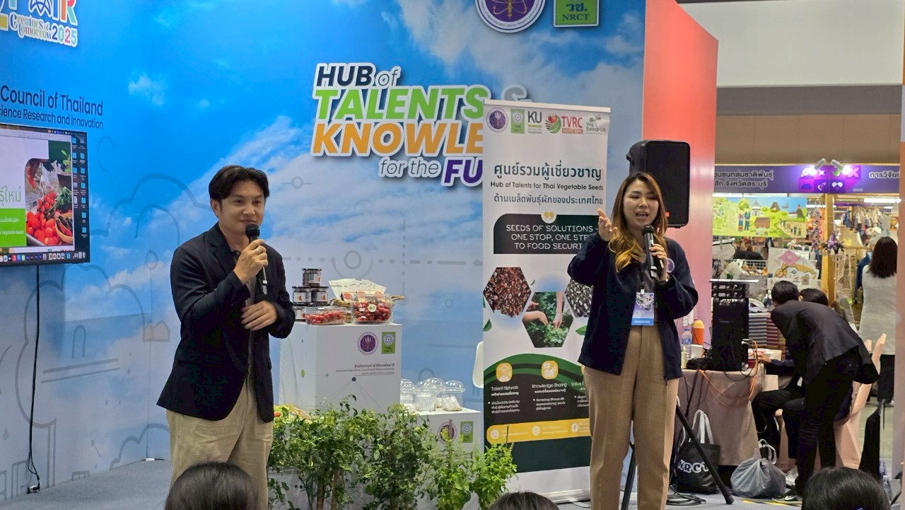 วันที่ 15 สิงหาคม 2568 ผศ.ดร.ชัชมาศ กาญจนอุดมการ นายทัศนัย ชัยเพ็ชร และนายอนุชา วงศ์ปราณีกุล จากโครงการศูนย์รวมผู้เชี่ยวชาญด้านเมล็ดพันธุ์ผักของประเทศไทย (Veg-SeedHub) ร่วมกิจกรรม Hub talk หัวข้อ "การแสดงพันธุ์ผักพันธุ์ใหม่ และการเก็บรักษาเมล็ดพันธุ์ตามมาตรฐานสากล"