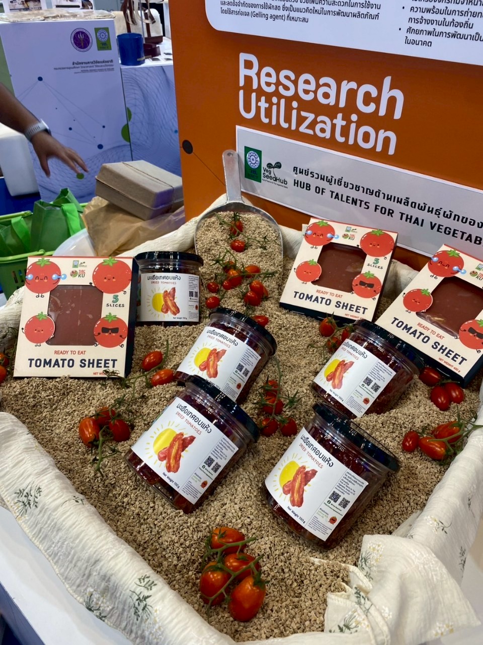 เราได้นำเสนอผลงานการใช้สายพันธุ์มะเขือเทศคุณภาพสูง ที่ตอบโจทย์ทั้งในด้านรสชาติ สี รูปร่าง และคุณค่าทางโภชนาการ เพื่อให้สามารถนำไป “ต่อยอด” เป็นผลิตภัณฑ์แปรรูปที่หลากหลาย เช่น